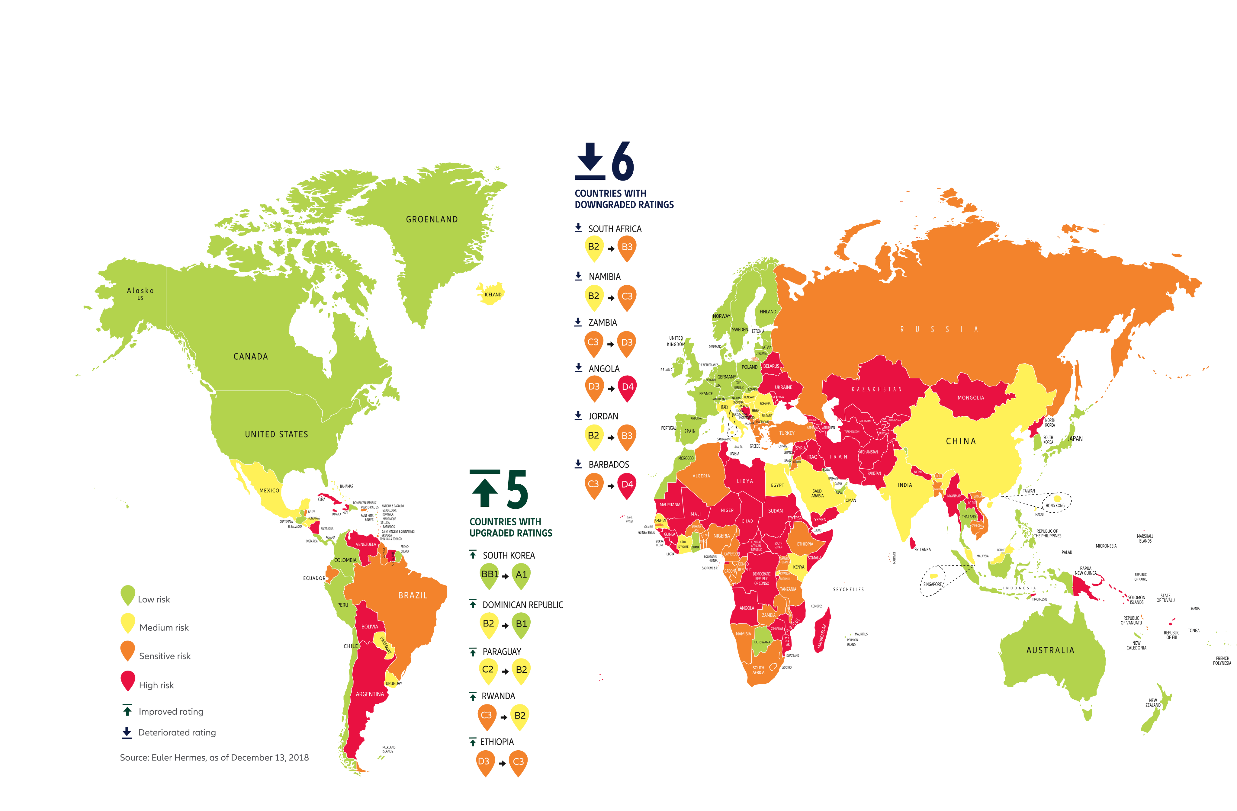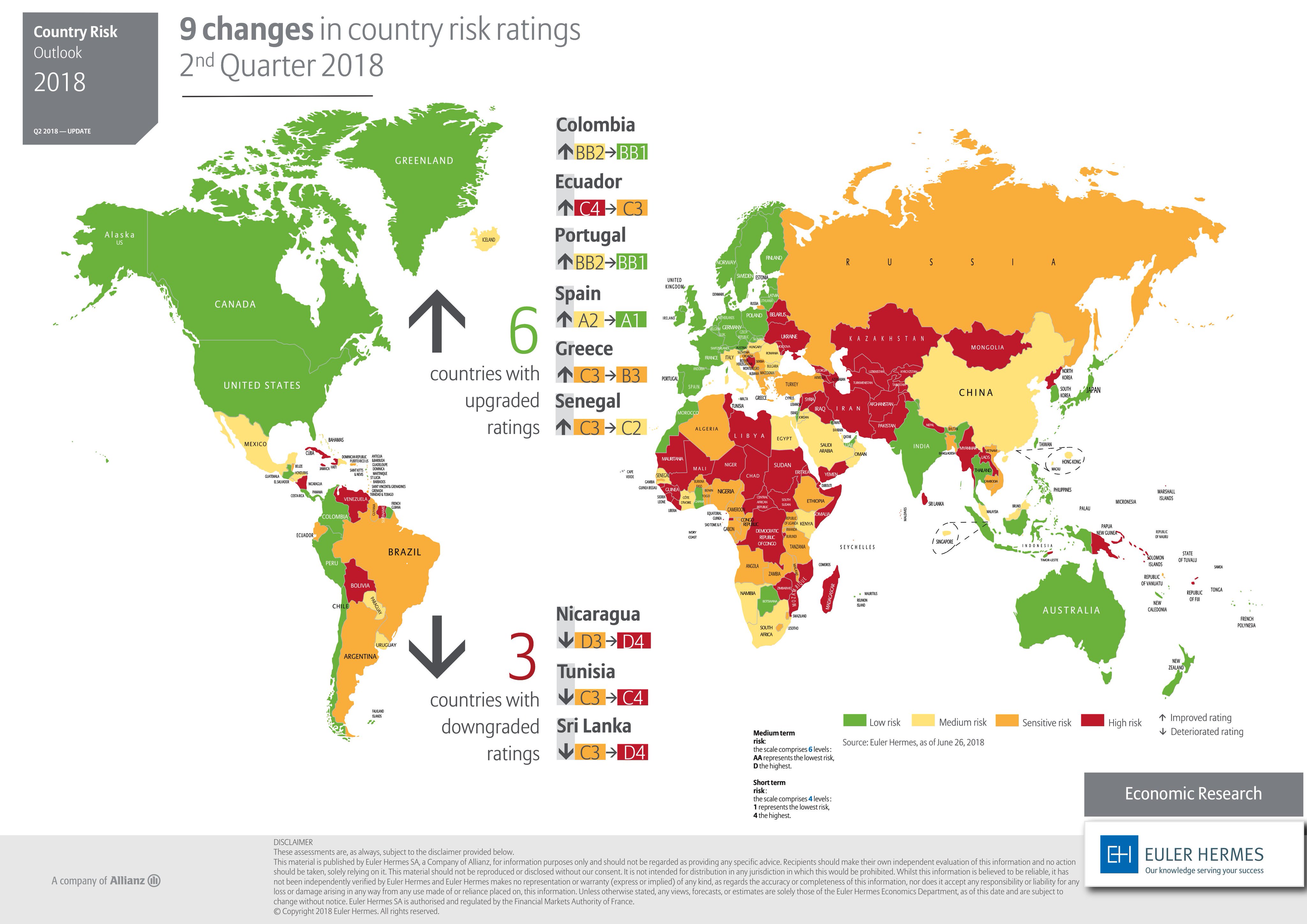 Euler Hermes’ Q1 2018 country risk ratings: 5 upgrades and 3