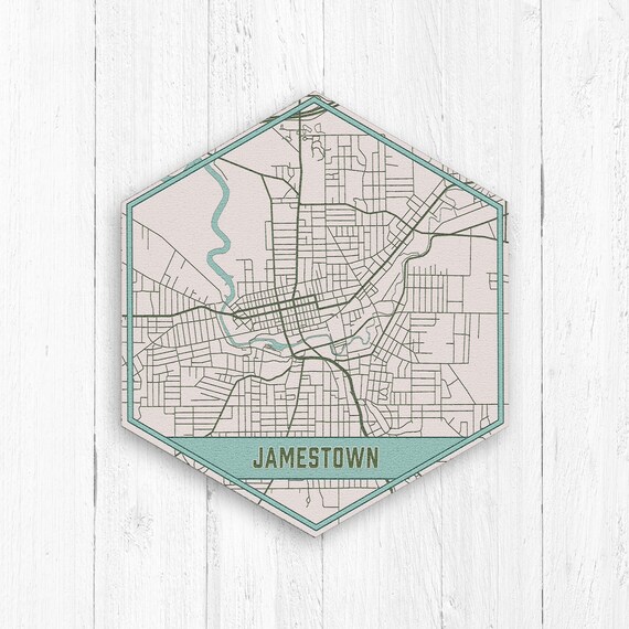 Jamestown New York Hexagon City Street Map Print, Jamestown Street
