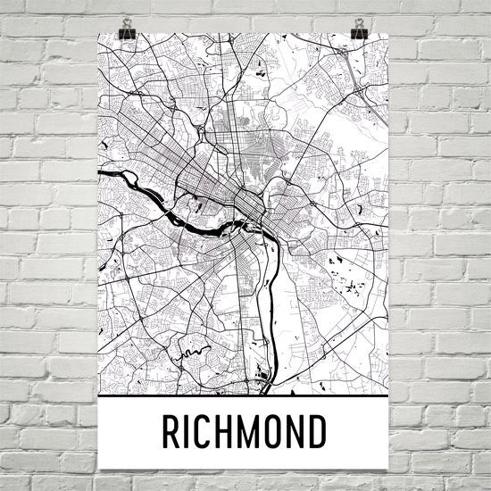 Richmond VA Street Map Poster Wall Print by Modern Map Art