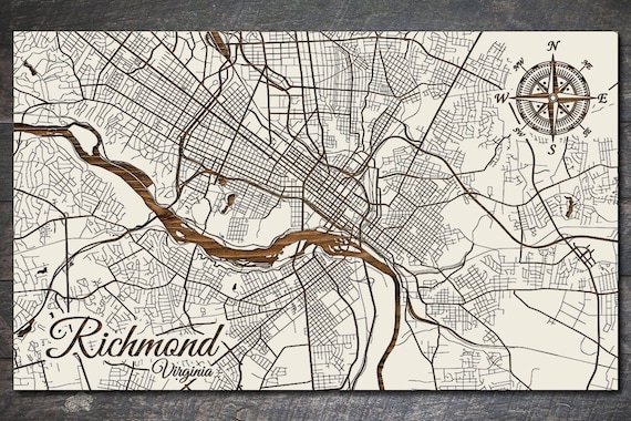 Richmond Virginia Street Map Wood Wall Art Wood Wall Map Etsy