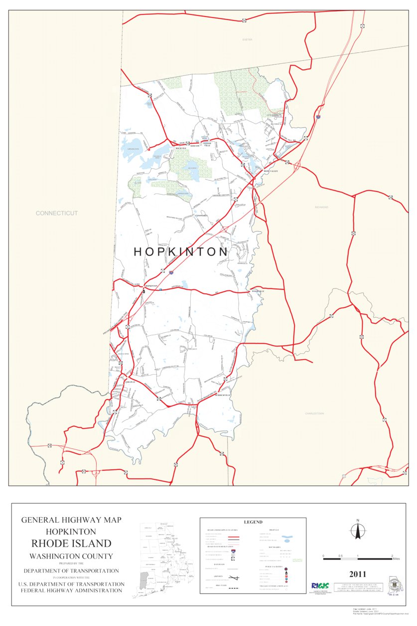 Highway Map of Washington County (Hopkinton) Rhode Island by